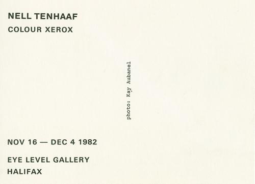 This exhibition of colour Xeroxes ran concurrently to a group exhibition. She employed a process of photo-copying which registers colour. Arranged in panels these photographic images formed a narrative that reveals aspects of a particular woman’s life.