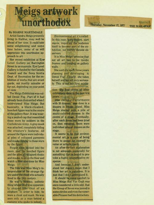 ‘A Dense Fog’ is a 20 minute, silent, Super 8 film which was completed in August 1977. It is the story of a man who wears a disguise. He is seen by all the passengers on a ship which is enveloped in a dense fog. The film consists of a series of titles which are interspersed with images.