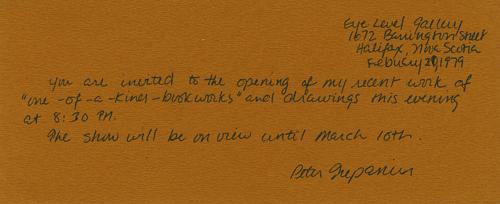 This exhibition will feature his most recent artist books and will include the documentation for his book entitled “Not to be Opened Till on the Lake” which is soon to be published by Eye Level Gallery. This book is about the contents of a letter written in 1849 by Trepanier’s great, great, grandmother from her grandmother.