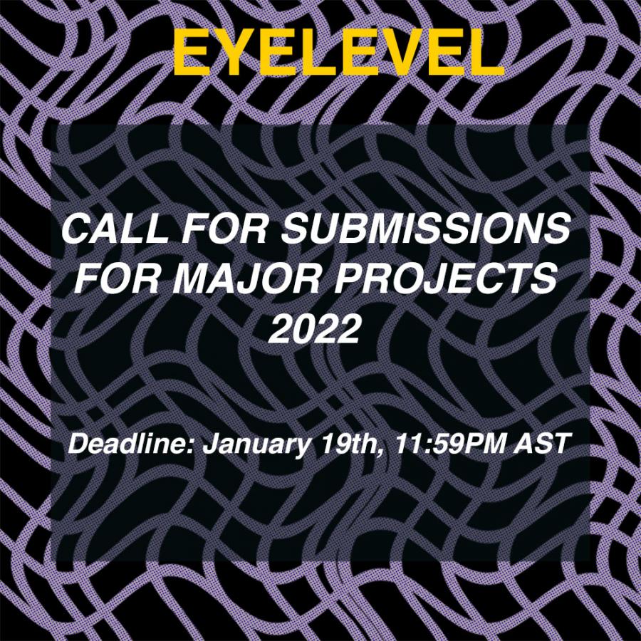 Eyelevel accepts applications to Major Projects in multiple formats. Our preference is for artists to apply with the https://forms.gle/HukxdyoANBu6Ftgs5. Proposals can also be emailed to Eyelevel in written, audio or video form, and pitched to Eyelevel in the form of a zoom or in-person interview, which will be recorded for the jury.