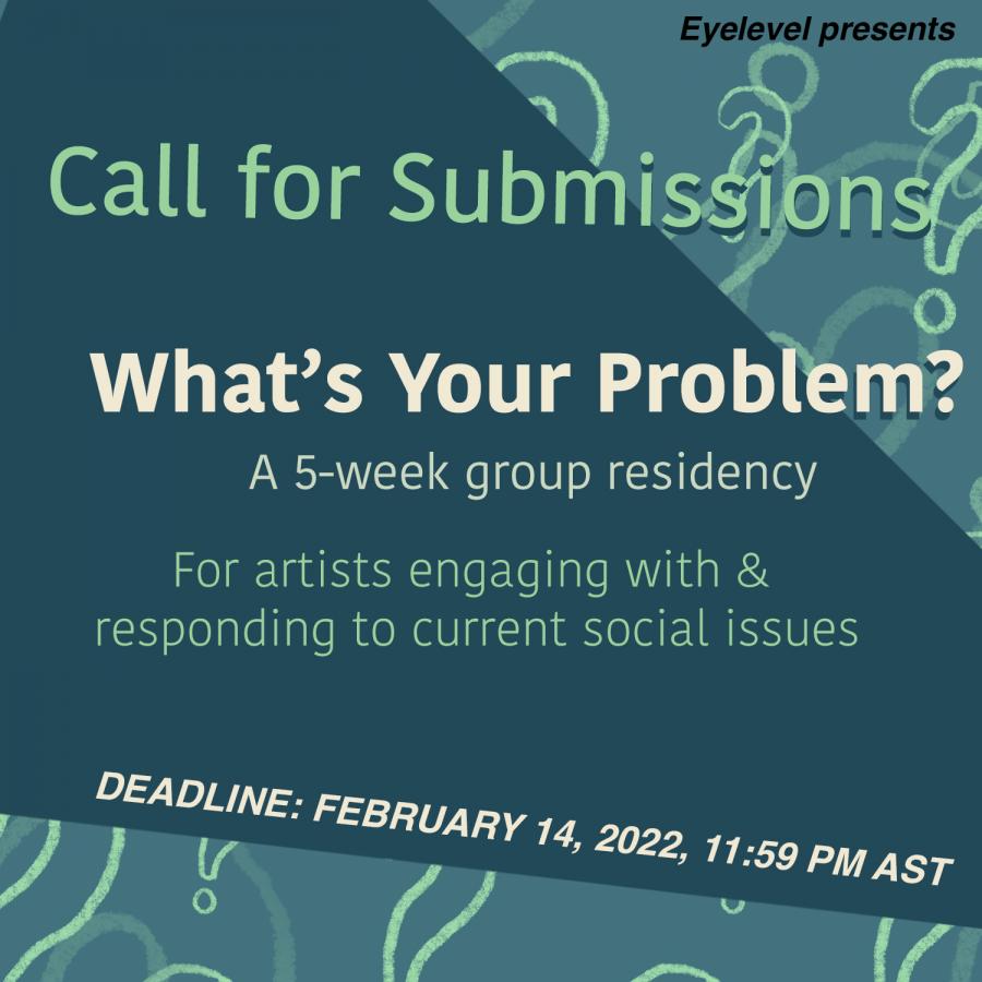 What’s Your Problem? Is a five-week group residency intensive scheduled to launch through Eyelevel Artist-Run Centre, March 15 to April 12 2022. This residency will house 4 artists at 2482 Maynard Street (Kjipuktuk/Halifax, NS) who express interest in using art as a vehicle for social activism/social justice. Artists will work individually on their project and will be encouraged to explore a “problem” (social issue) of their interest to investigate throughout the residency. What’s Your Problem? will comprise of weekly group meetings co-facilitated by Arjun Lal and Raven Davis where the artists will engage in discussions and idea sharing over a meal.There is no pressure to complete projects by the end of this residency. However, selected participants should be ready to commit to this program including its scheduled meetings and activities.