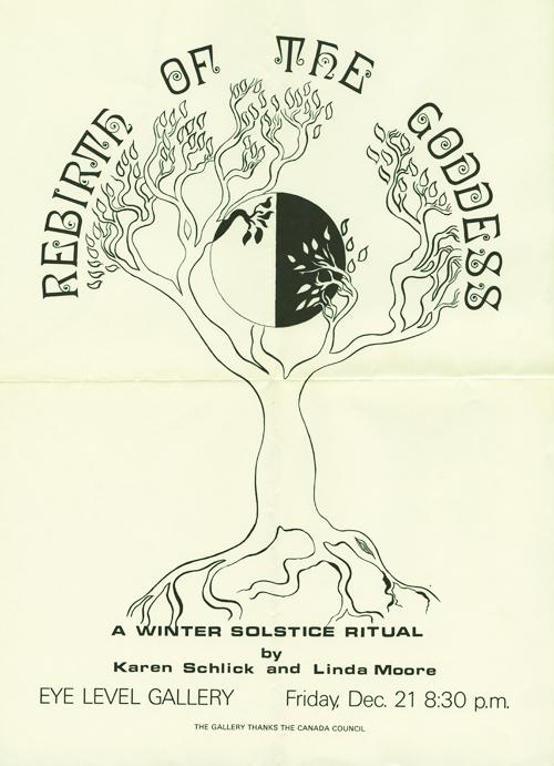 The piece consists of a 15 minute poem “Rebirth of the Goddess”, which deals with personal rebirth, rebirth of the light at the time of the solstice, and a need for (currently) a rebirth on the earth of awareness of the earth and her cycles. The poem works on several different levels, and has a dramatic quality evoking North American Indian poetry.”