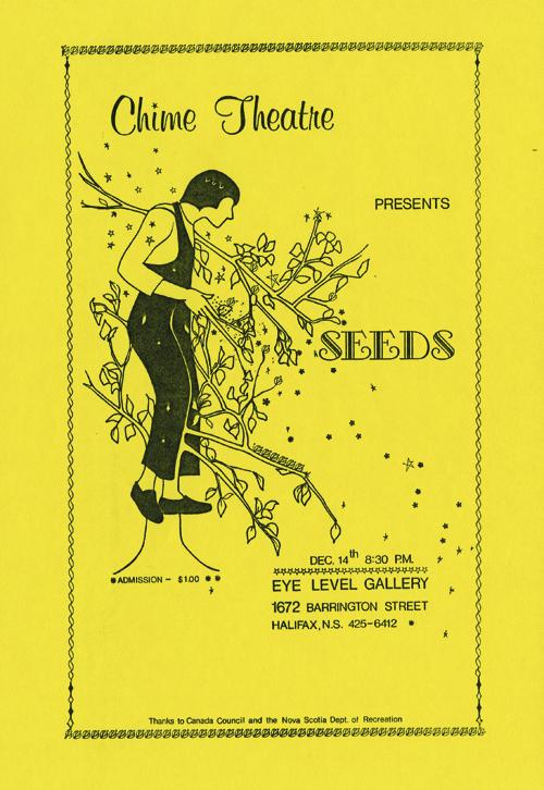 A work created and performed by Elizabeth MacCormick and Sherry Lee Hunter, assisted by Glen Wadman – sound production, Bilbo Bruce, musician and Blue Sugar Bo Morrisette. Seeds is a show about beginnings; potential … as the seed is the apple … it finds faces everywhere and touches them, lets them be. It’s a seed dream. Chime does not easily lend itself to description with words. It is a menagerie of sights and sounds, poetry and silent stories. It is more … Chime is not mime that sounds different. It is like a sister gone away searching for new songs, loving to sing.