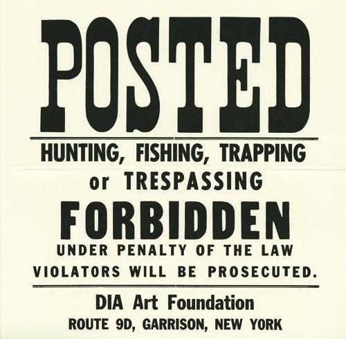 The original poster, of which this is an identical reproduction, can be found on the property surrounding the DIA facility (the Dan Flavin Museum) in Garrison, New York.”