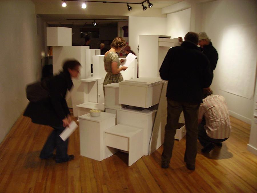 In Archive Improv, resident artist Craig Leonard is inviting visitors to interact with Eyelevel Gallery's archives through a basic request-based retrieval system. Each fulfilled request will generate a structural addition to an improvised storage unit in the gallery that will grow over the course of the residency/exhibition. Cabinets, cubbyholes, and hidden nooks will house archival documents that visitors may take away. Leonard will also be producing disobedient artifacts and drawings in response to selected archival materials.