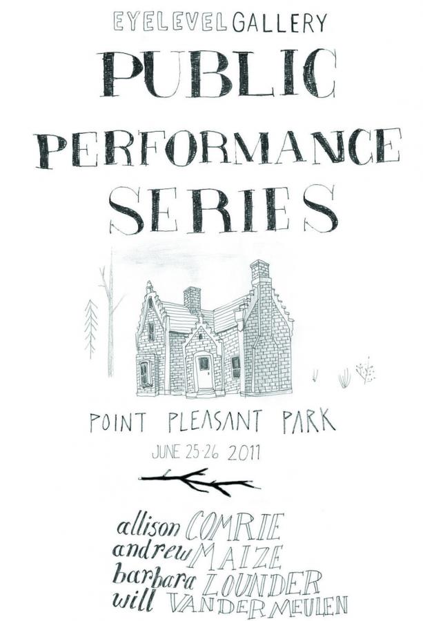 Eyelevel Gallery's Public Performance Series will take place between June 25- July 26, 2011 in Point Pleasant Park. This series will address Point Pleasant Park as a specific site, engaging park visitors and project participants alike, to experience artwork outside of the traditional gallery space in the public realm. This project will create an intersection for the park and gallery to meet, providing a mutually beneficial exchange of ideas and experiences for both communities.