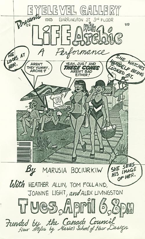 A dramatization of Archie comics, in which scenes from the comic books are juxtaposed with commentary and a backdrop of slides. The performers take on the comic book roles, and then comment upon them. The performance then becomes an analysis of the way women are objectified in popular culture.