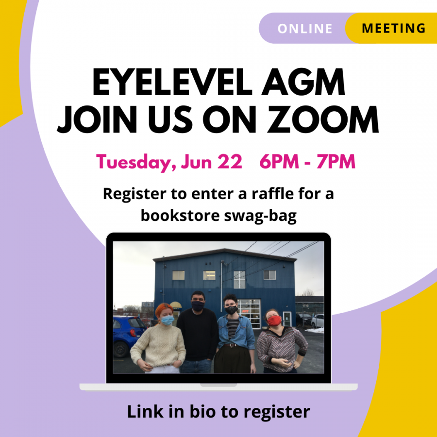 The AGM is open to anyone, but only members are able to vote. If you are curious about whether or not your membership is active, please reach out to Sally at director@eyelevel.art. Memberships can also be purchased here (low-cost/no-cost memberships available on request for those in need)