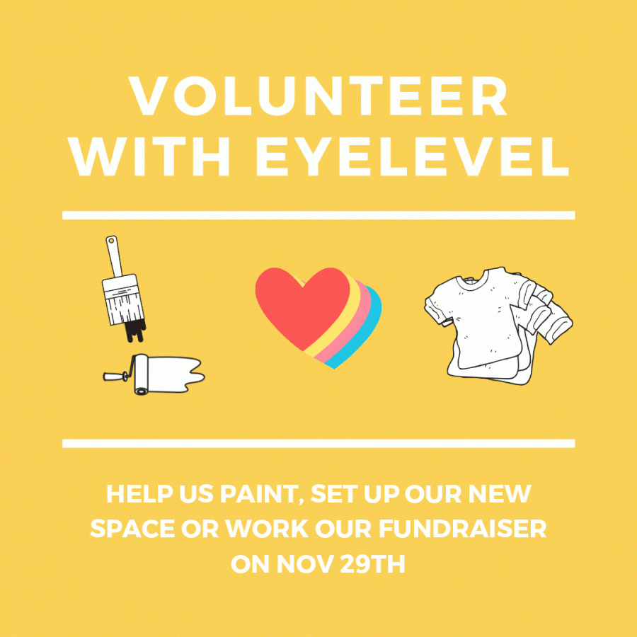 *Snacks will be provided on both days. If you would like to help out on either of these days, please contact Sally at director@eyelevel.art with the date and time that you'd like to help out.