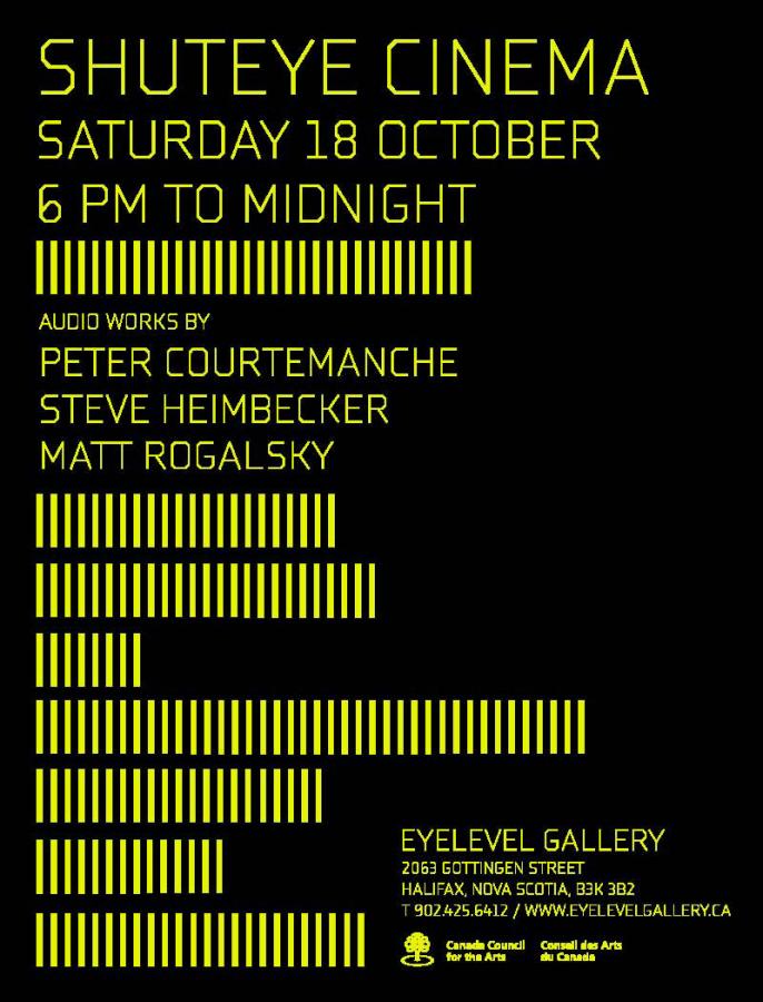 Matt Rogalsky, Peter Courtemanche and Steve Heimbecker Shuteye Cinema 18 Oct 2008 18 Oct 2008 Do you have information about this event? Let us know and we'll add it to the site.