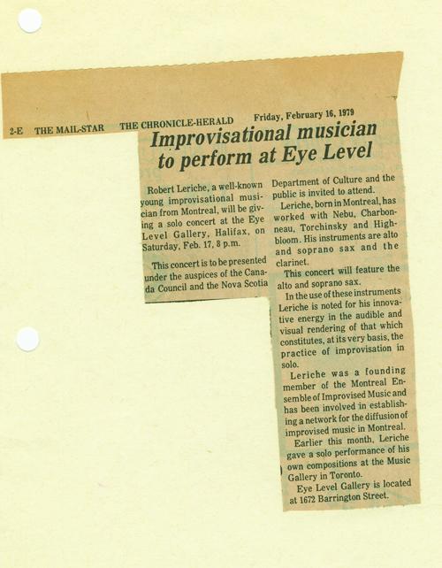 Leriche’s instruments are alto and soprano sax and the clarinet. This concert featured the alto and soprano sax. In the use of these instruments Leriche was noted for his beautifully innovative energy in the audible and visual rendering of that which constitutes at its very basis the practice of improvisation in solo.