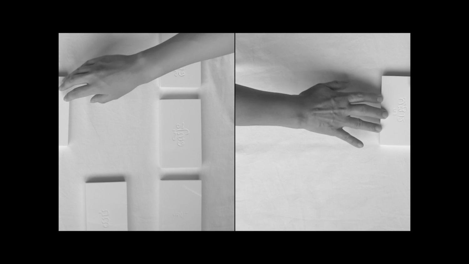 In the video works entitled 1973-1979, Asleep in Sleeplessness II, and 1980, the use of coin therapy and relief patches provide temporal healing experiences while the constant repetition ignites the strenuous and longevity of pain as permanent. Body movements like my hand in Opposites and the Same along with sounds such as Waves of Fortitude enforce acts of patience to further explore the dualities of pain and healing. It is the push and pull, the give and take the fluidity and hesitation, and the clarity and obscurity that eventually map parts of our identities.