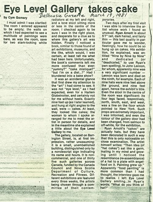 1n 1975 1 was employed as a ground keeper at a cemetery in Reginasask. At lunch one day 1 noticed that the picture of the tune on a plate on the label on the tunatin looked like a hat, so 1 cut it out and made a collage/drawing in my dairy which 1 was written in. That idea sat like a germ, inating in my mind and growing til again in 1979 1 noticed the resemblance (re-assemblance) of a hat to a plate with angel food on it. Painting grew up.
