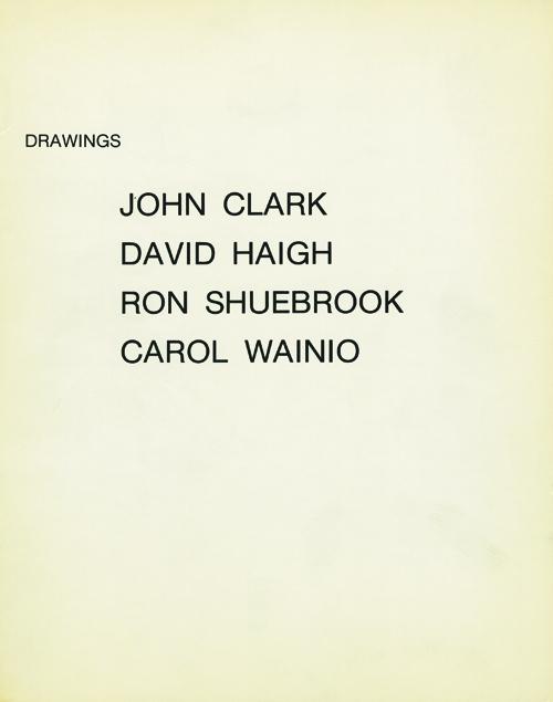 This exhibition offers selected recent drawings by four diverse artists who currently reside in Halifax. John Clark orchestrates various media, gestural processes, and formal devices while resolutely constructing images derived from commonplace subject matter. The refreshing mixed media drawings by Carol White also embrace the meaning of specific subject matter while structuring surprising spatial shifts and inventive surfaces. The light filled, colored pencil drawings by David Haigh present poetic insights into the domestic environment and explore a more literal attitude toward representation. Ron Shuebrook calculates and improvises charcoal, graphite, and conte marks into spatially tense, geometric configurations that preserve the traces of the working procedure.